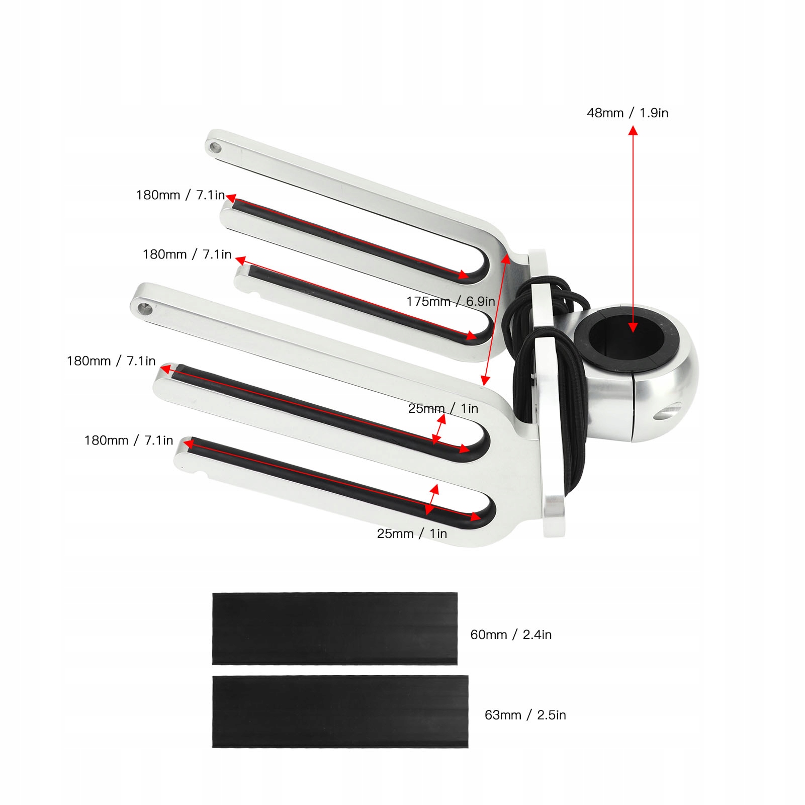 Особливості: 1. Застосування: закріплює дошки на місці під час бурхливих днів на озері або швидкої подорожі озером, для затискних труб діаметром 1,89 дюйма 2,36 дюйма 2,48 дюйма.