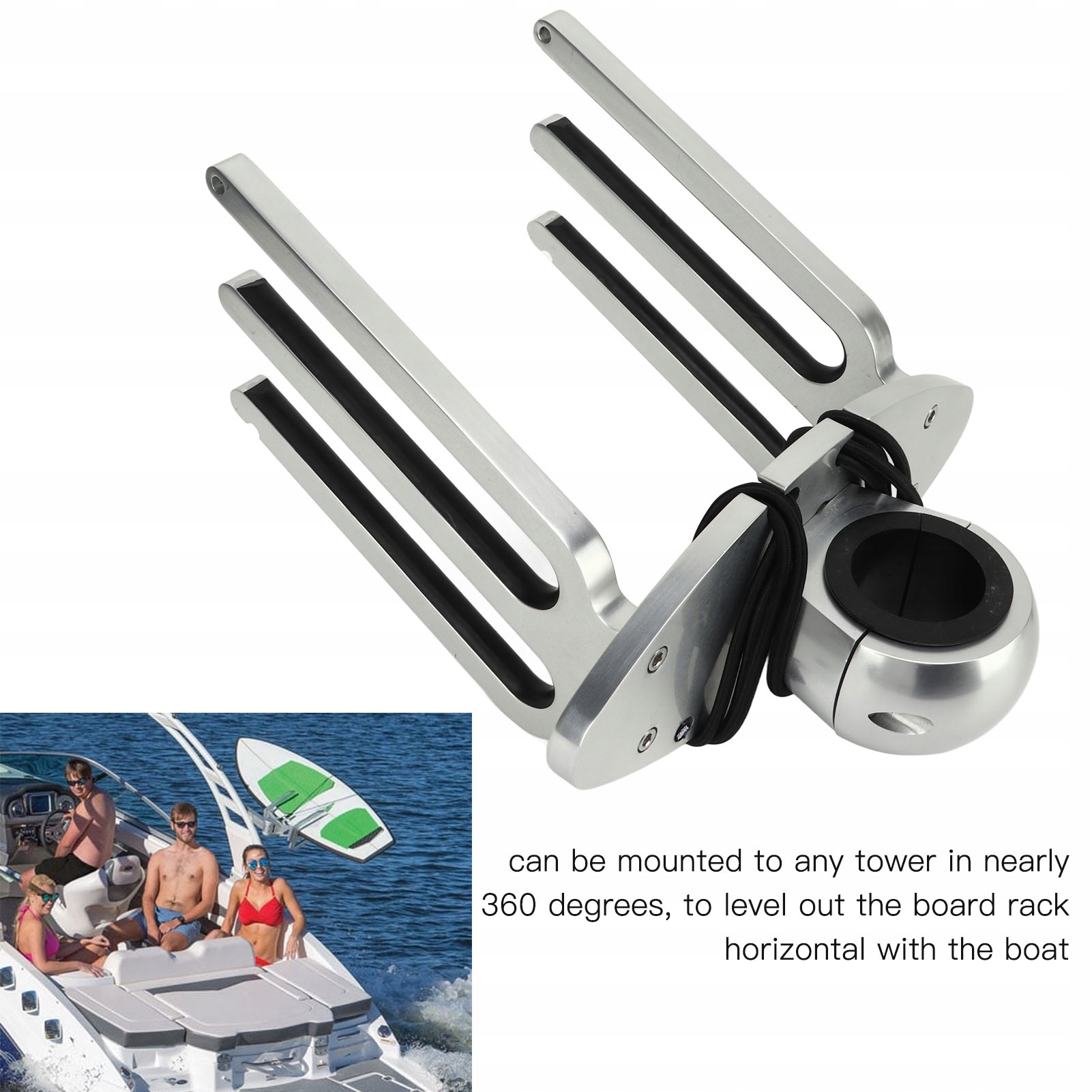 2. Гнучке кріплення: монтажну стійку для вейкборду можна встановити на будь-яку вежу під кутом майже 360 градусів, щоб вирівняти стійку для вейкборду горизонтально з палубою.