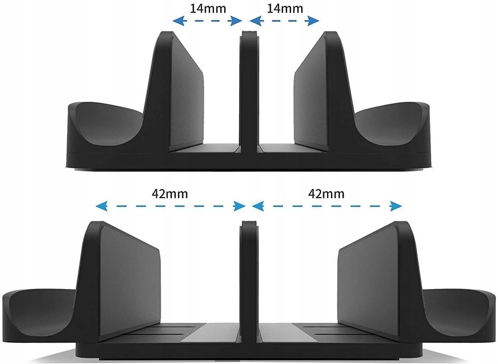 Можливість регулювання з гвинтами дозволяє отримати велику використовувану стійку ноутбука, ширина якої становить між 14 мм і 42 мм, наприклад: