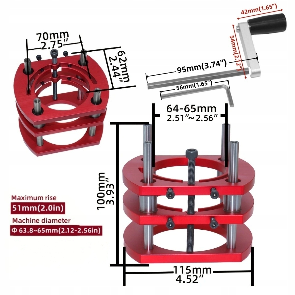 Застосування сцен: Цей набір підйомних баз підходить для деревообробних машин, таких як гравірування, засоби, обрізання та фазуючі машини. мм (2 дюйми), його можна підняти на 1 мм при обертанні, метод ручного підйому є безпечним і стабільним.