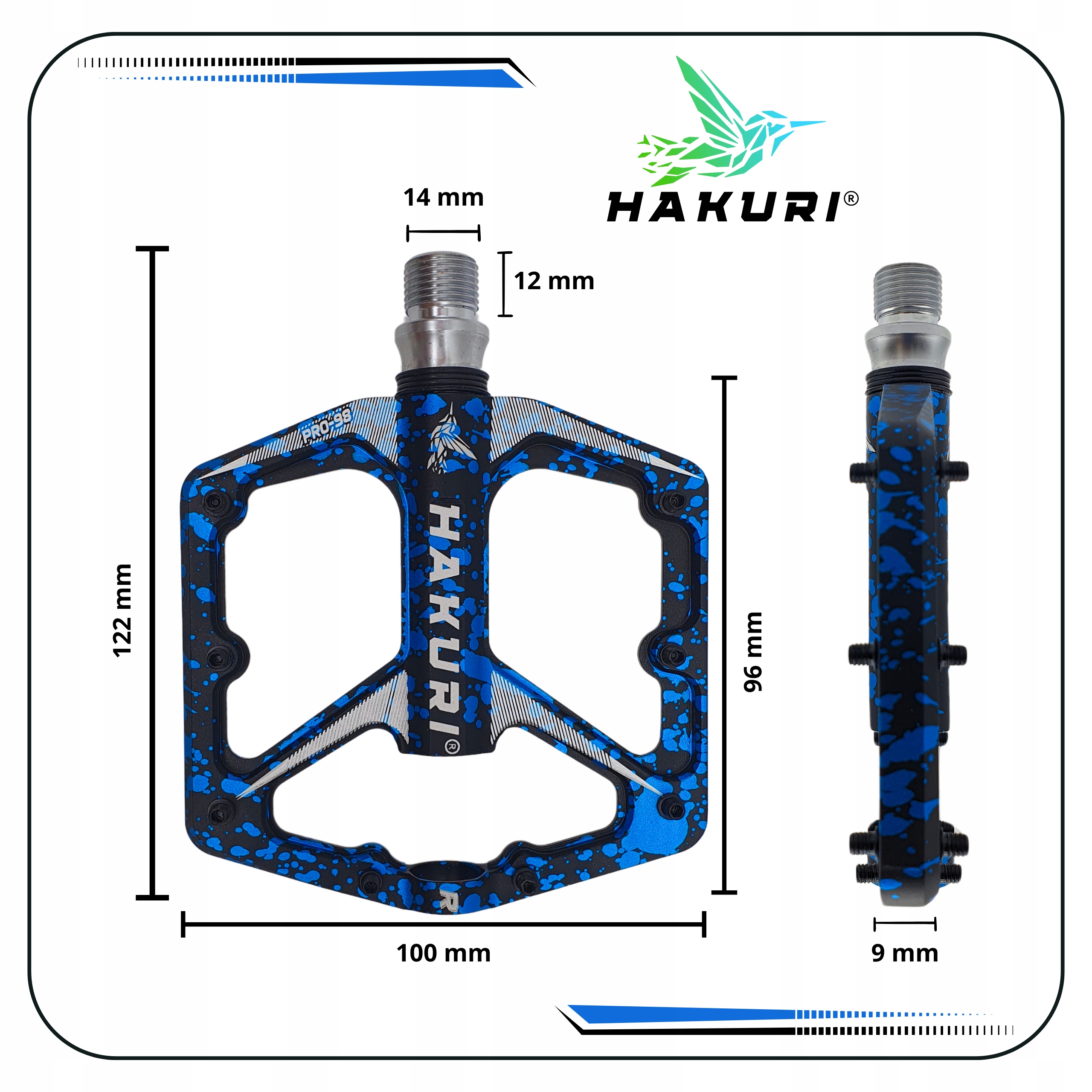 АЛЮМІНІЄВІ ПЕДАЛІ HAKURI модель PRO-98 BLACK-BLUE