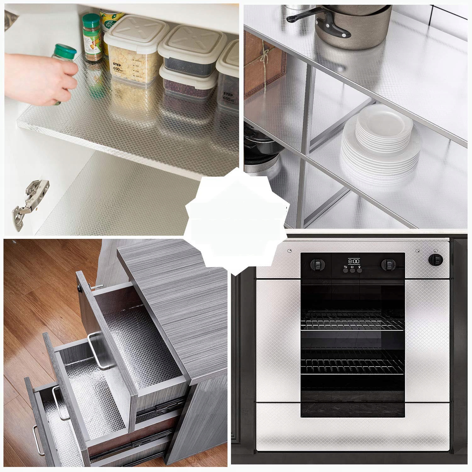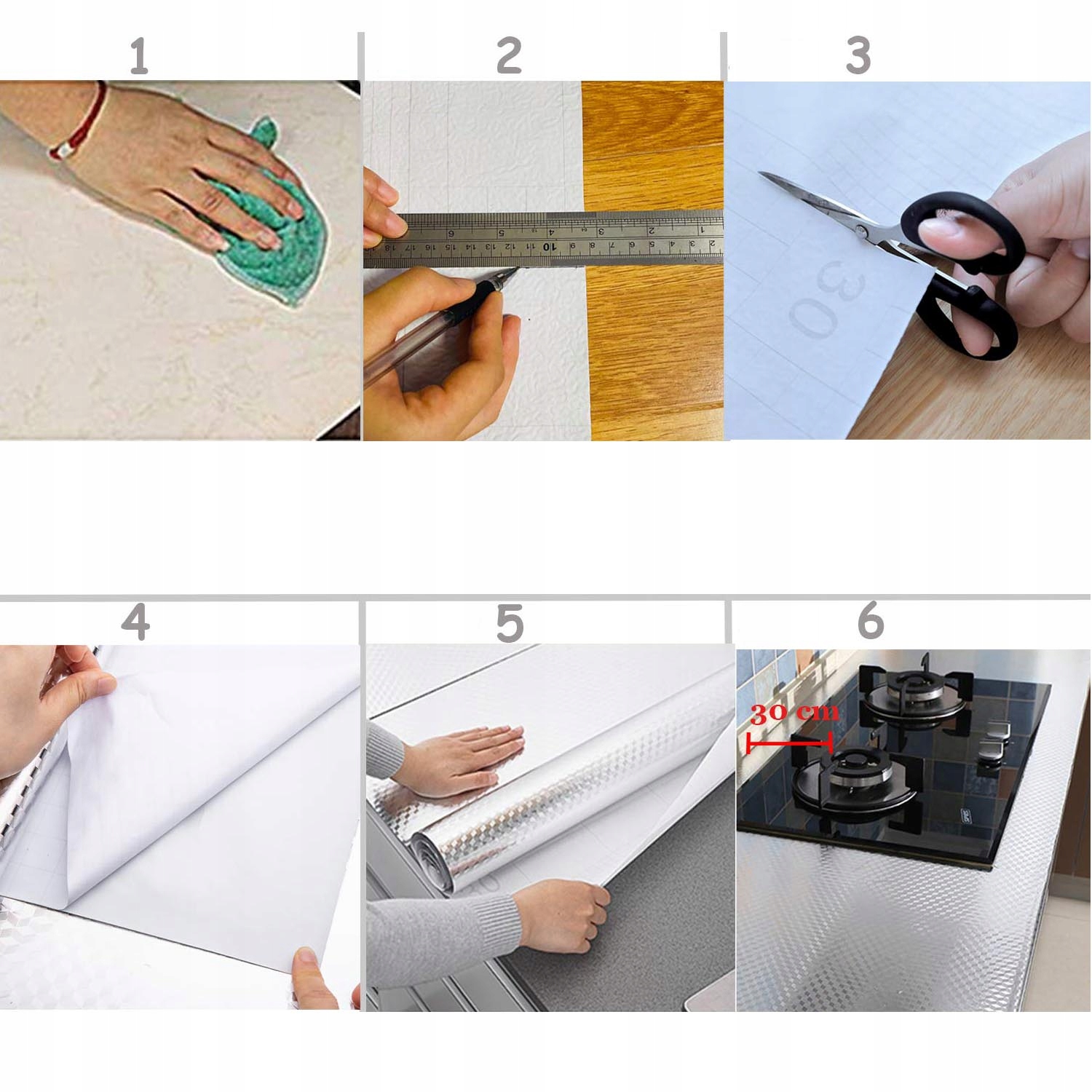 ✅ Кухонна плівка дуже проста у використанні. Просто виріжте їх до потрібного вам розміру, а потім наклейте на поверхню, яку хочете наклеїти. Зі зворотного боку є зручна ріжуча сітка, яку ви можете легко розрізати та прикрасити власну кухню самоклеючою плівкою.