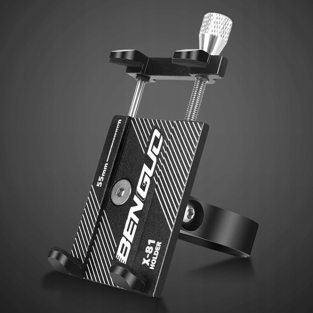 Металевий власник телефону добре тримає мобільний телефон на велосипеді.