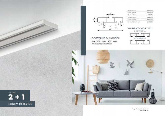 ➡️ from the length of 260 cm, the rail and the cover consists of two elements and is connected with one rail connector and covers that are attached in the set