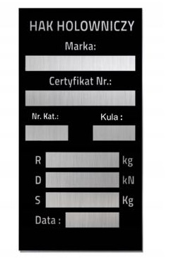 АЛЮМІНІЄВА ТАБЛИЧКА З ІНФОРМАЦІЄЮ ЗАМІНА БУКСИРУЮЧОГО ГАКА МАРКУВАННЯ ВКЛЮЧЕНО У ЦІНУ