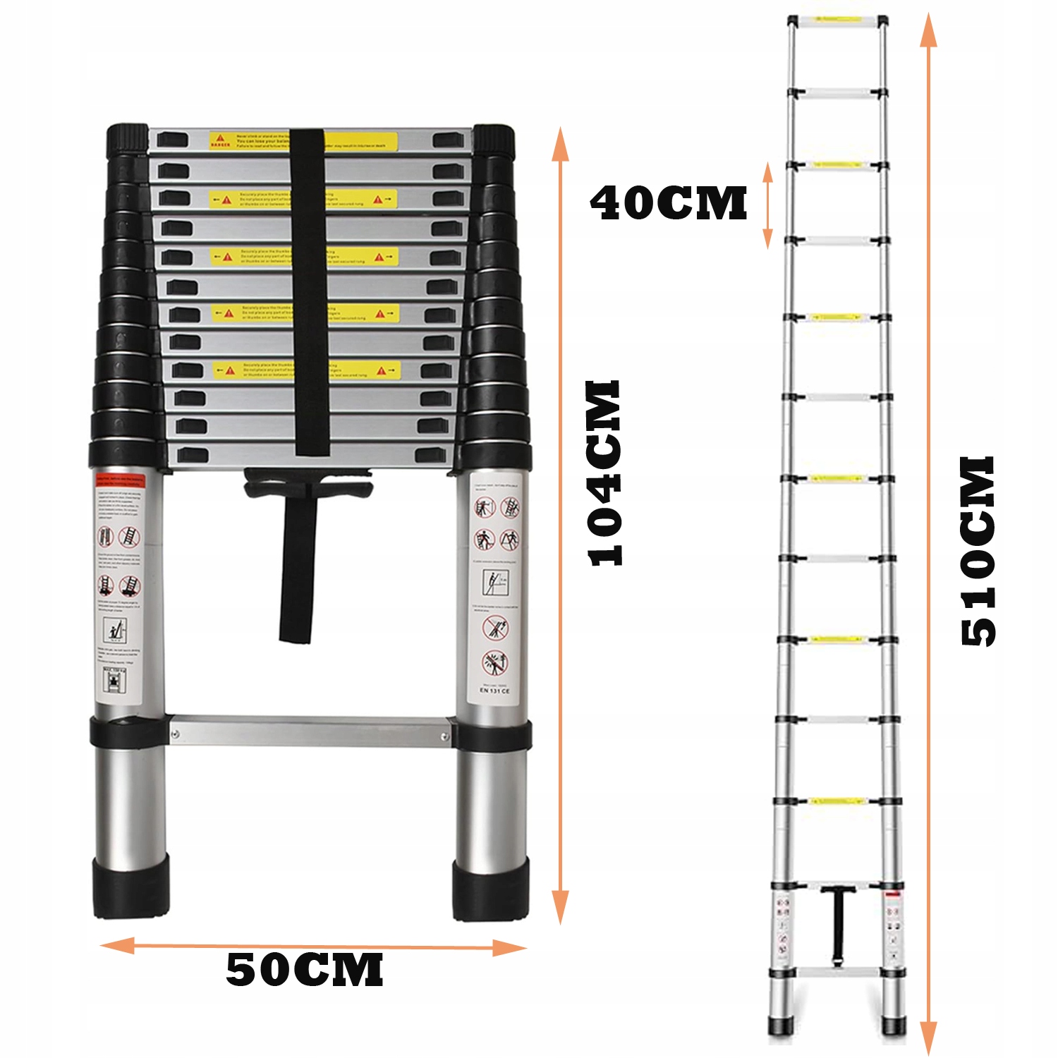 Алюмінієва телескопічна драбина 5,1 м регулювання 1x13 Поступова не -сліп