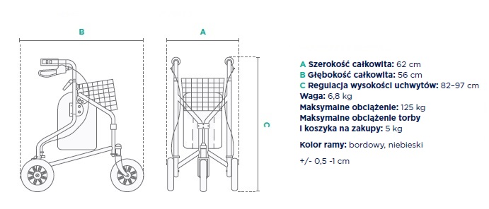 ПІДСТАВКА НА ТРЬОХ КОЛЕСАХ АЛЮМІНІЄВА + СУМКА + КОШИК - TIMAGO TGR-R RTA 891L