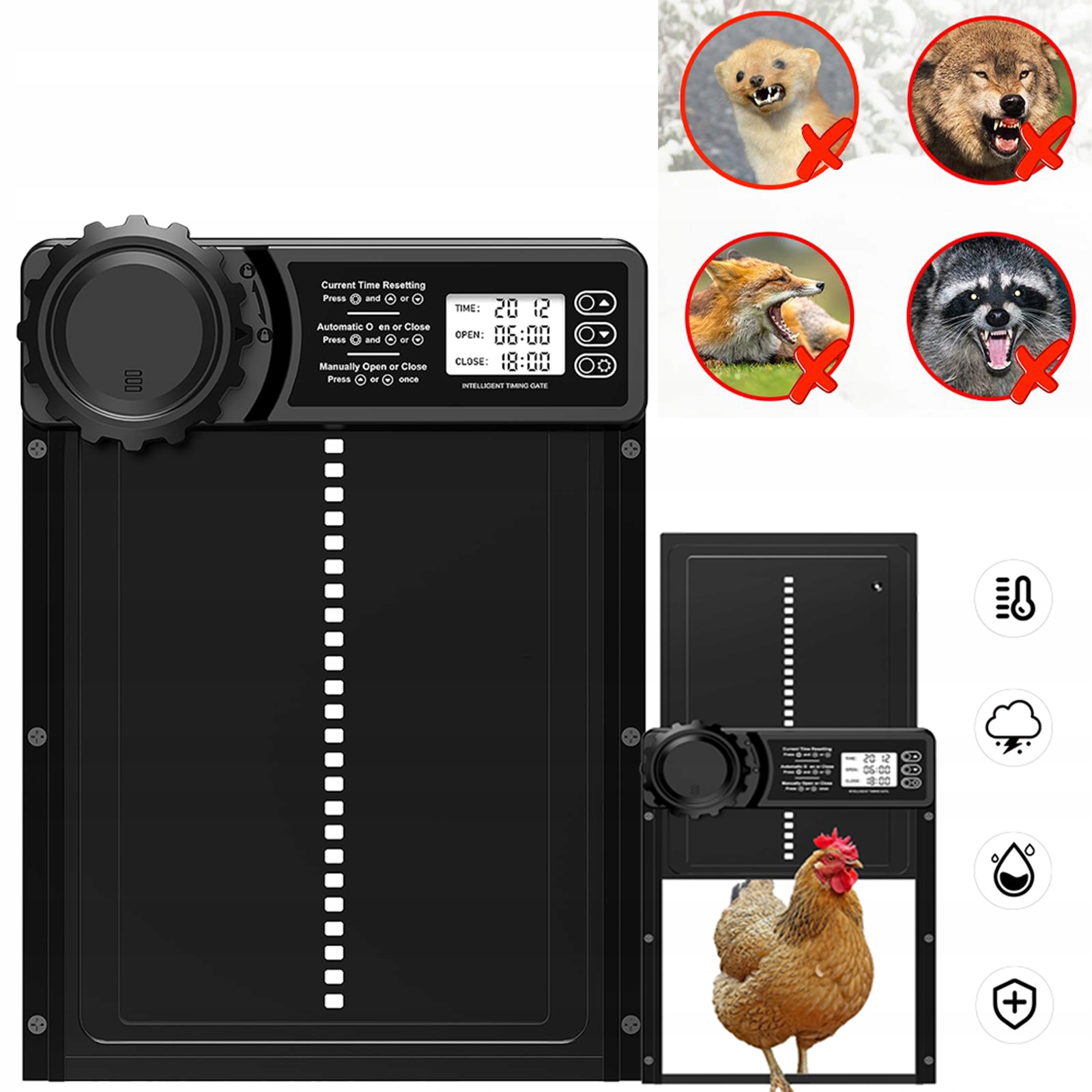 - ГНУЧКІСТЬ НАЛАШТУВАННЯ: Програмовані двері дозволяють регулювати час відкривання та закривання відповідно до конкретних потреб вашої стади. Час можна налаштувати відповідно до зміни сезонів і світлового дня.