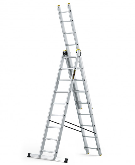 Багатофункціональна алюмінієва драбина, 3 частини, тиснена, 9 ступенів, 150 кг PRO D3X9-PRO Drabest