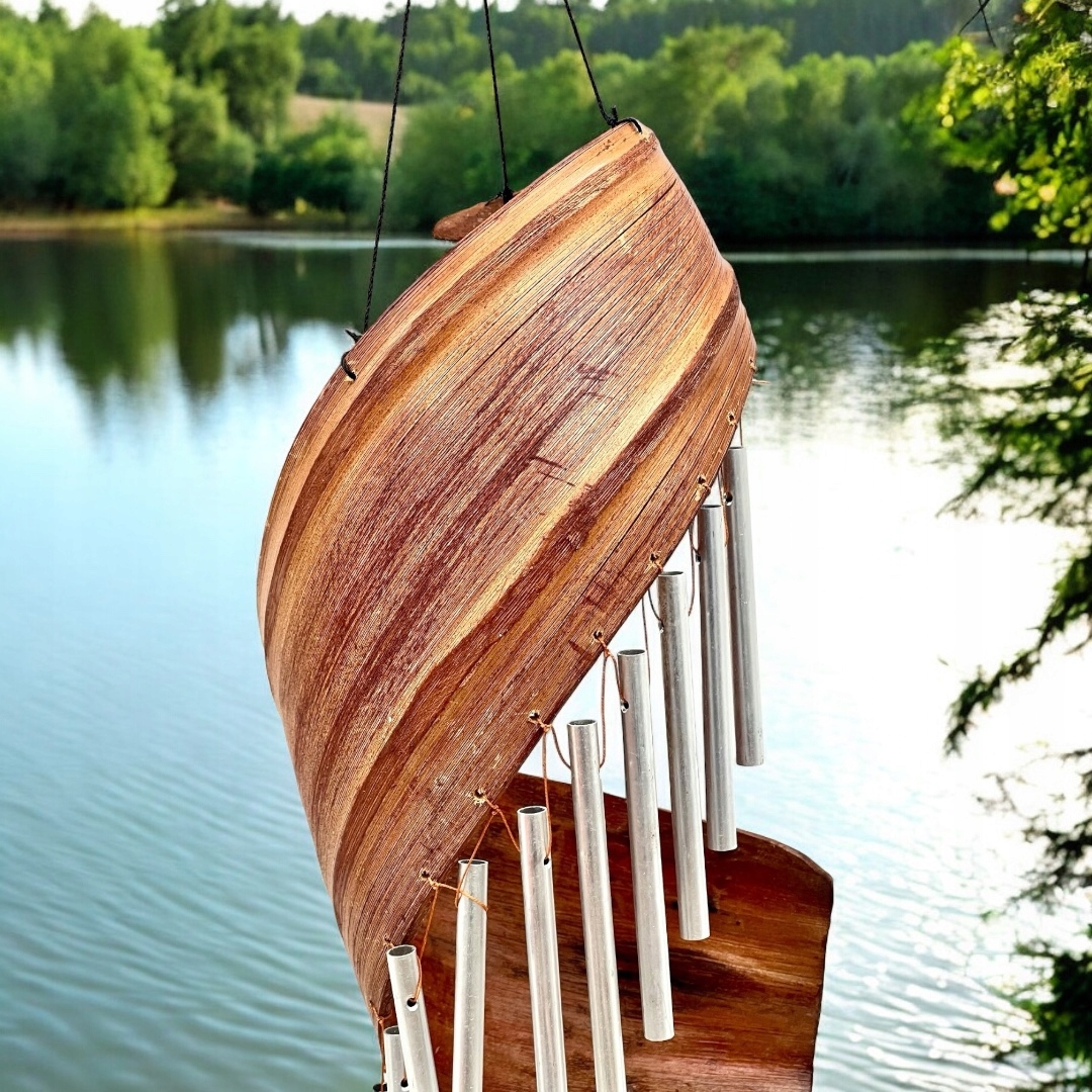 Додайте нотку екзотичного шарму своєму інтер’єру чи саду за допомогою наших алюмінієвих вітряних дзвіночків, підвішених на банановому листі. Кожен твір – це унікальне поєднання тонкого звучання та унікального дизайну.