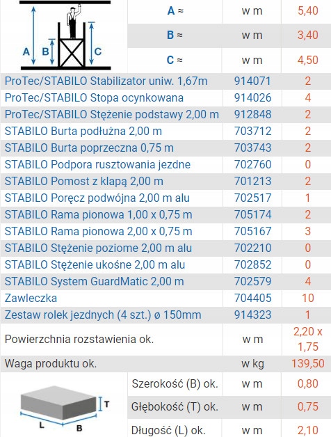 - Сертифіковано TÜV, навантаження 200 кг/м² (група риштувань 3) відповідно до PN EN 1004-1