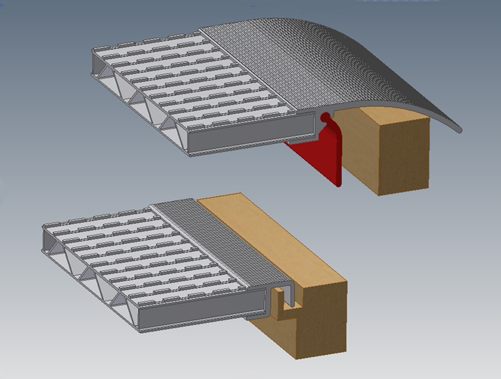 - алюмінієві пандуси/злітно-посадкові смуги виготовлені з лиття вантажопідйомністю від 2 до 45 тонн