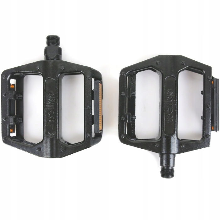 Міцні педалі велосипедні зі світловідбивачами - універсальні, якісні, ідеальні та зручні для їзди на велосипеді. Поверхня педалей має спеціальні виступи, завдяки чому взуття не ковзає по своїй поверхні і ідеально прилягає до будь-якого типу взуття. Педалі мають відбиваючу панель, яка захищає велосипедиста від небезпеки на дорозі. Вони ідеальні вночі, де видимість обмежена.