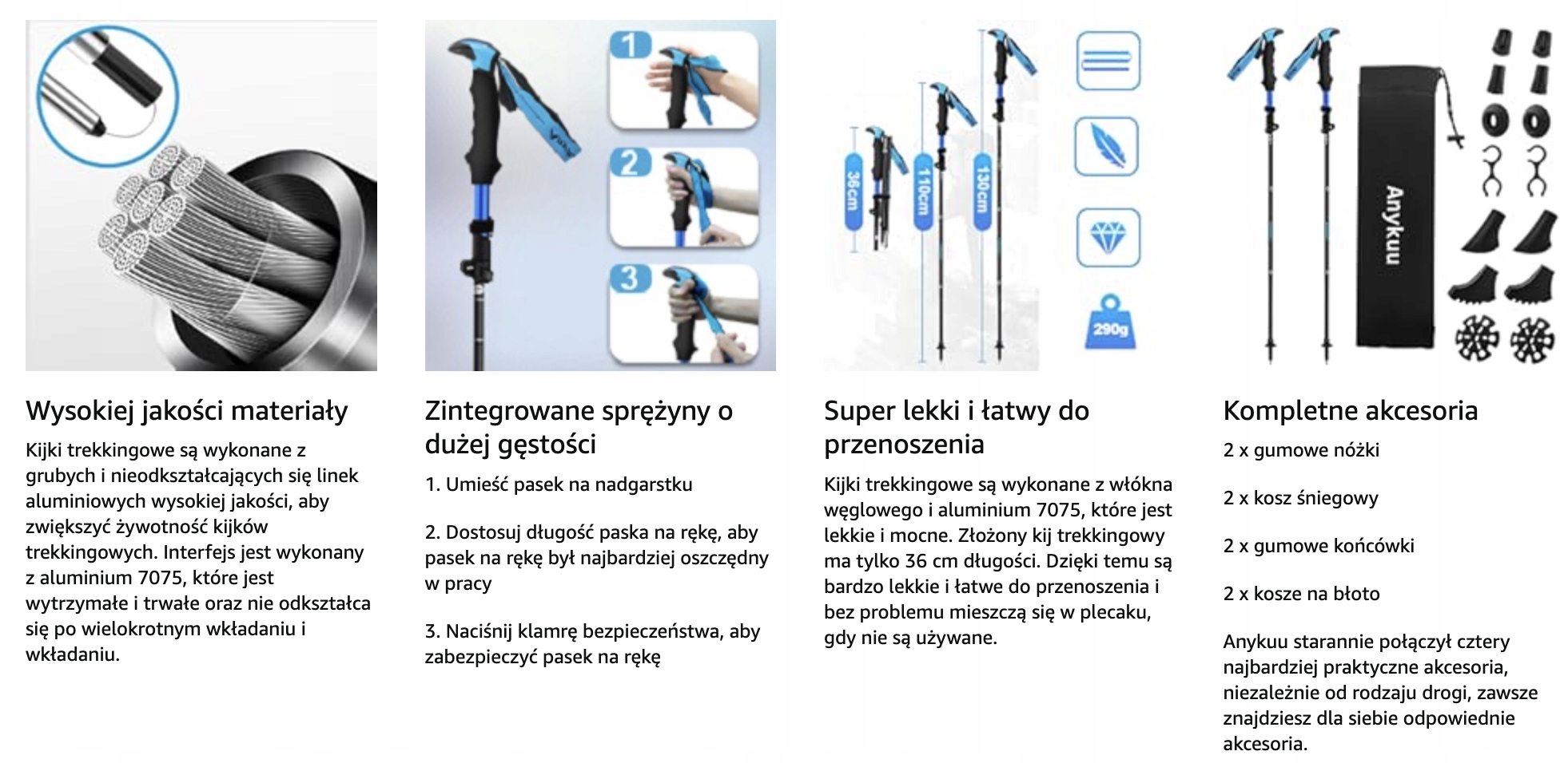 ankuu trekking ділянки складання алюмінію 7075-110-130 см, для північної ходьби, блукання + 6 пар аксесуарів