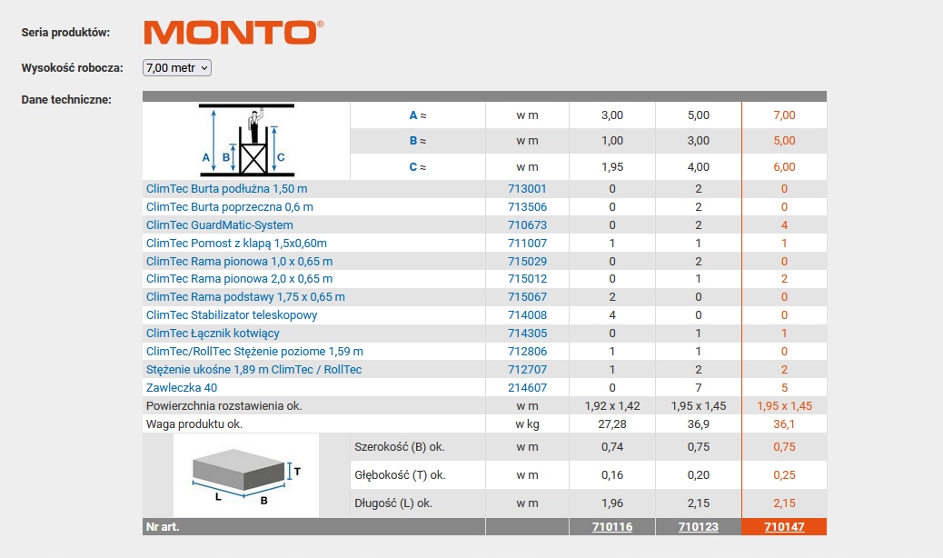 Їхня легка та водночас безпечна конструкція для швидкого та універсального використання. Гарантує швидкий монтаж і демонтаж без інструментів, навіть однією людиною. Використання нової інноваційної системи поручнів GuardMatic із повною інтеграцією діагональних розкосів забезпечує захист під час монтажу риштувань відповідно до чинних стандартів безпеки. Конструкція висувного стабілізатора дозволяє регулювати його ширину під використовувану робочу висоту, що забезпечує оптимальну безпеку при роботі. Риштування ClimTec дозволяє виконувати різні види будівельних, оздоблювальних та монтажних робіт на максимальній робочій висоті до 7 м.