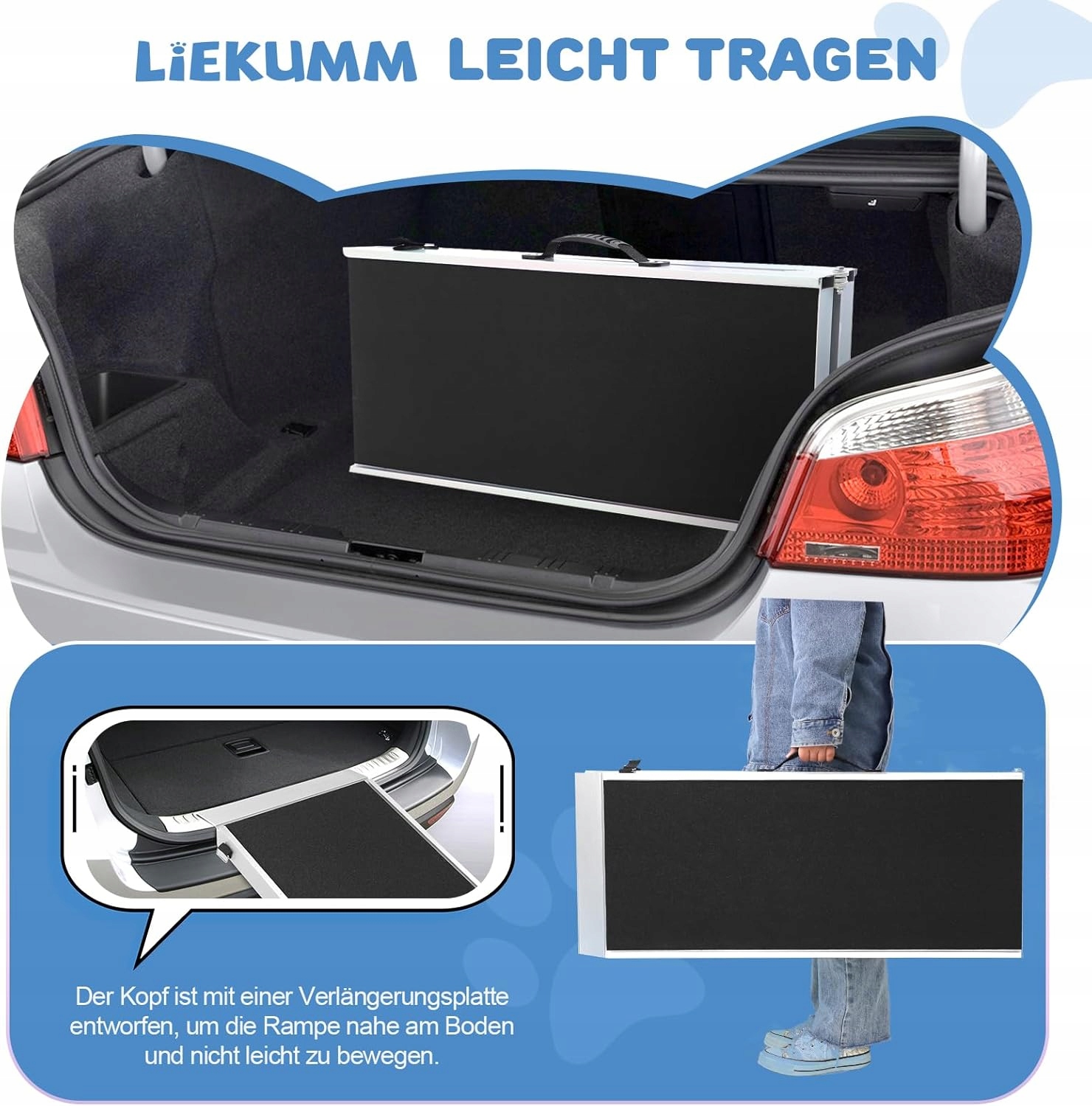 - 【Технічні характеристики】 Рампа для домашніх тварин важить лише 6,25 кг і має вантажопідйомність 180 кг. Розміри після поширення: 184,5 х 38 см, розміри після складання: 83,5 х 38 х 12,3 см. Платіжна рампа для домашніх тварин для вантажних автомобілів, фургонів та позашляховиків.