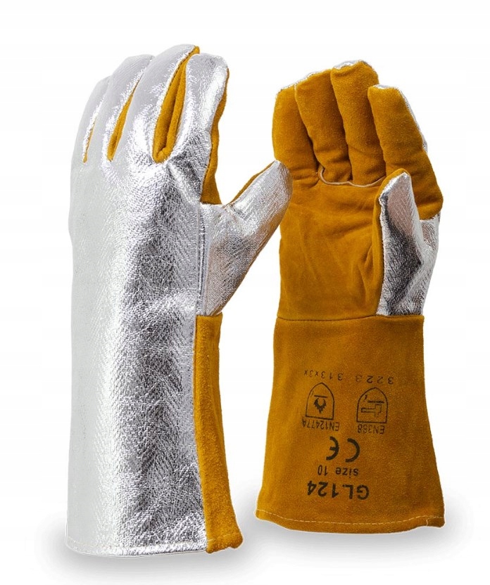 Алюмінієві зварювальні рукавички з розщепленою волячою шкірою передньої частини GL 124, розмір 10