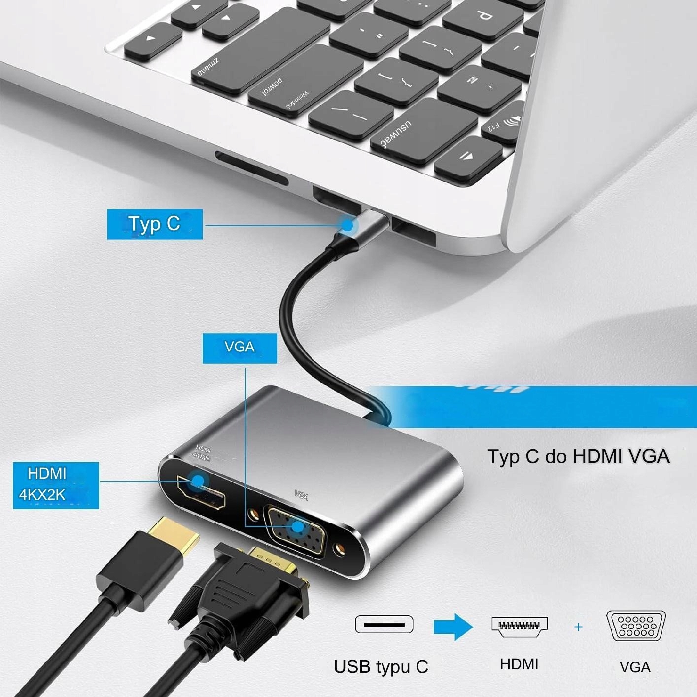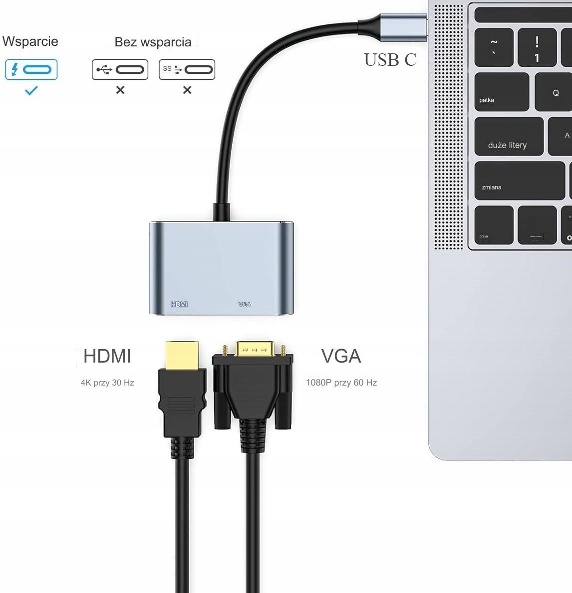 ♨️Hub 2in1, висока якість передачі зображення - HDMI 4K/30 Гц + VGA для пристроїв із входом USB C♨️