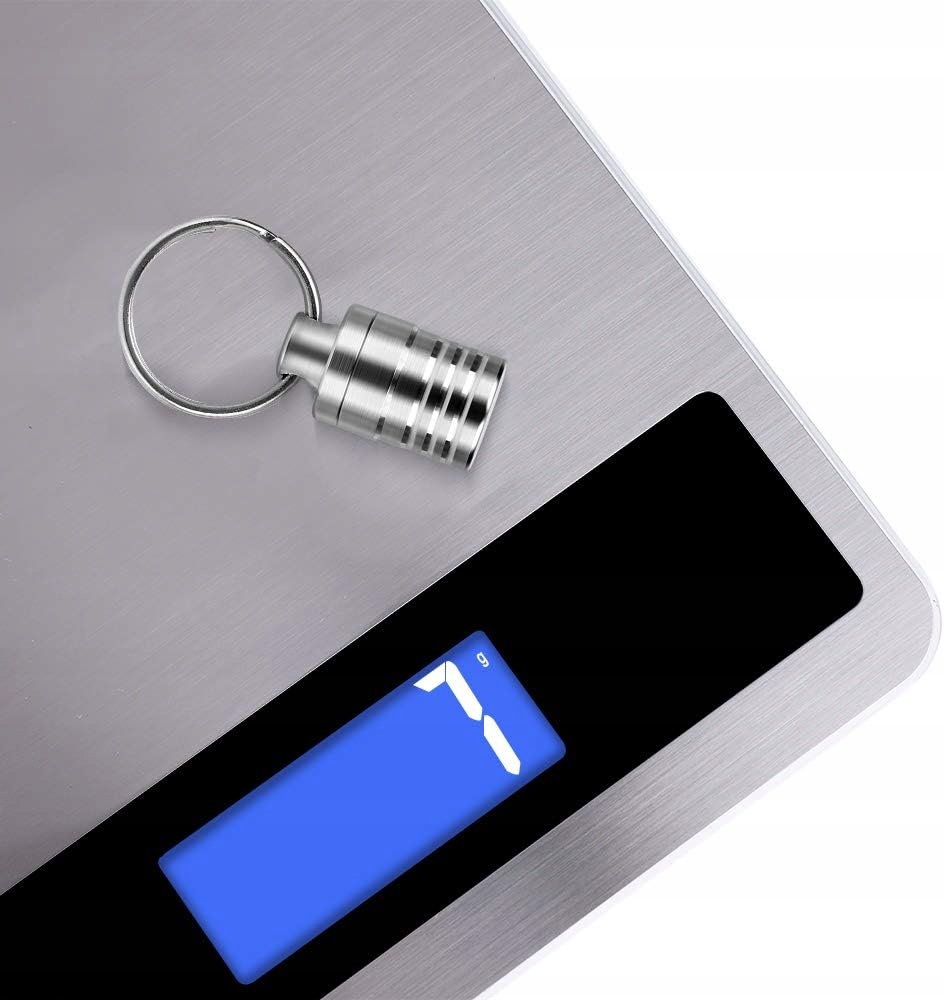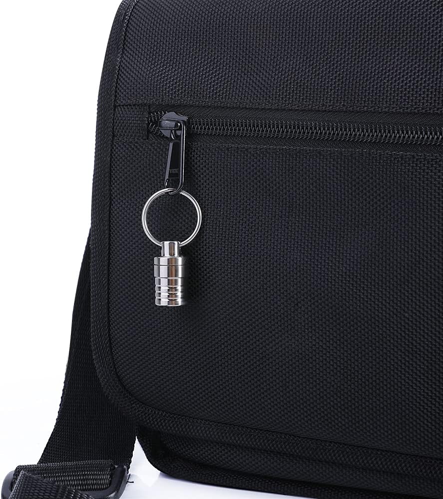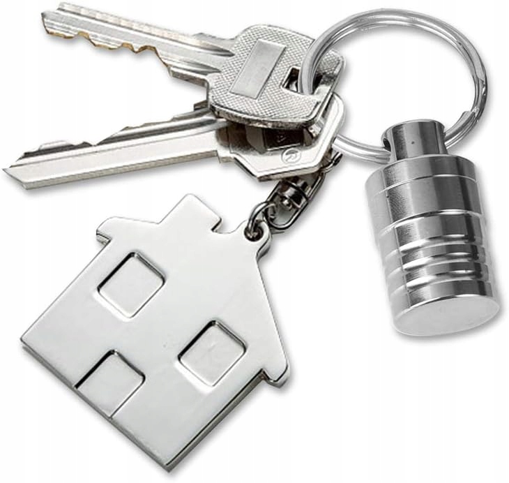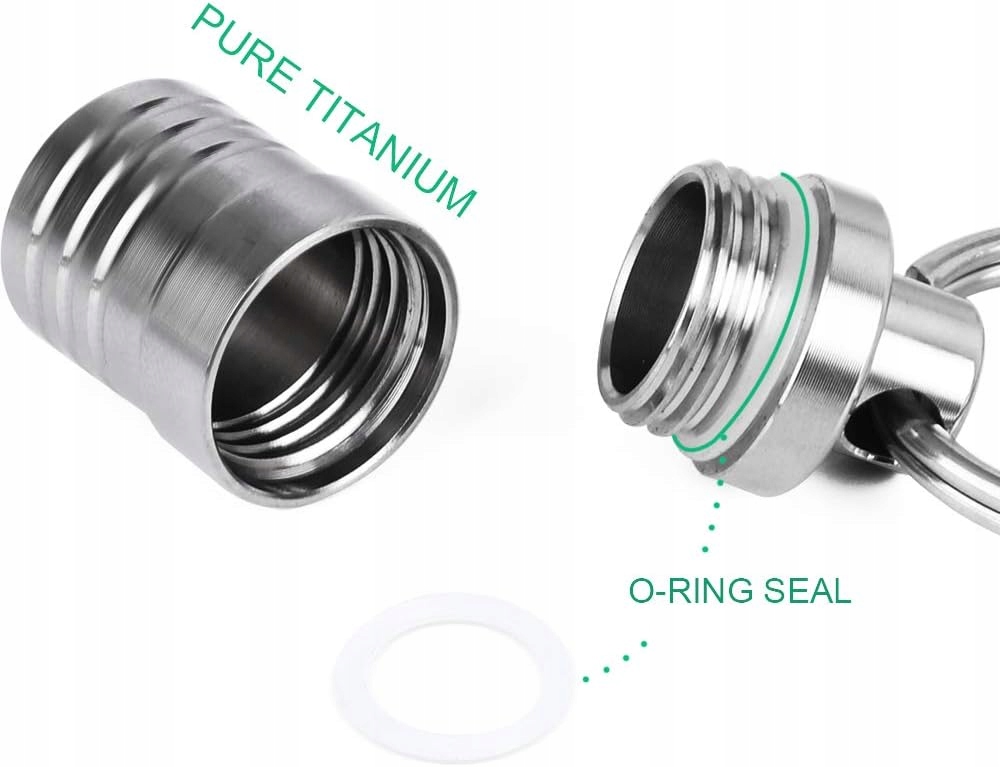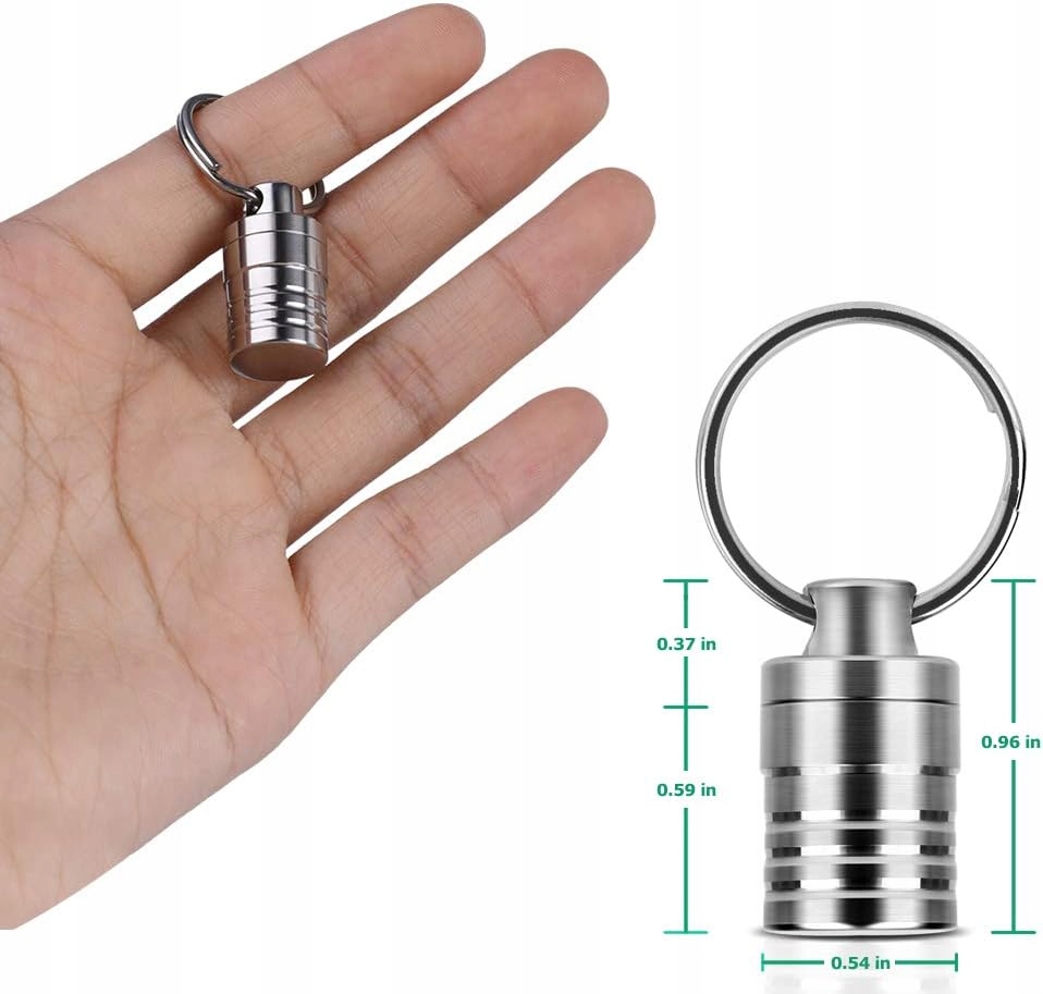 Водонепроникний, невеликий алюмінієвий контейнер для таблеток з кільцем для ключів і ланцюжком 70 см.