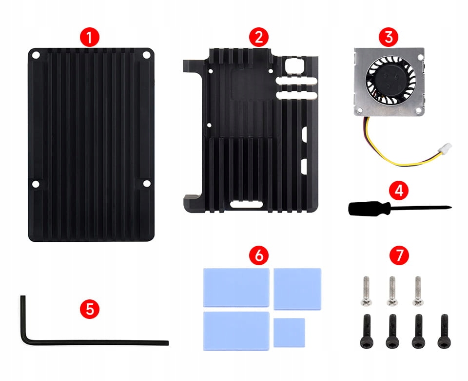 - ✅Швидке розсіювання тепла: ребра радіатора працюють разом із вентилятором, щоб прискорити розсіювання тепла та забезпечити стабільну роботу Raspberry Pi 5 .