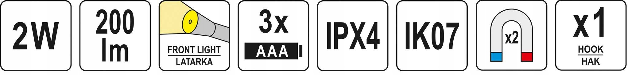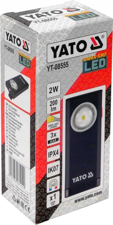 Стійкий алюмінієвий ліхтарик YATO, оснащений діодом Osram, який забезпечує світло потужністю 200 лм і радіусом дії 30 м.