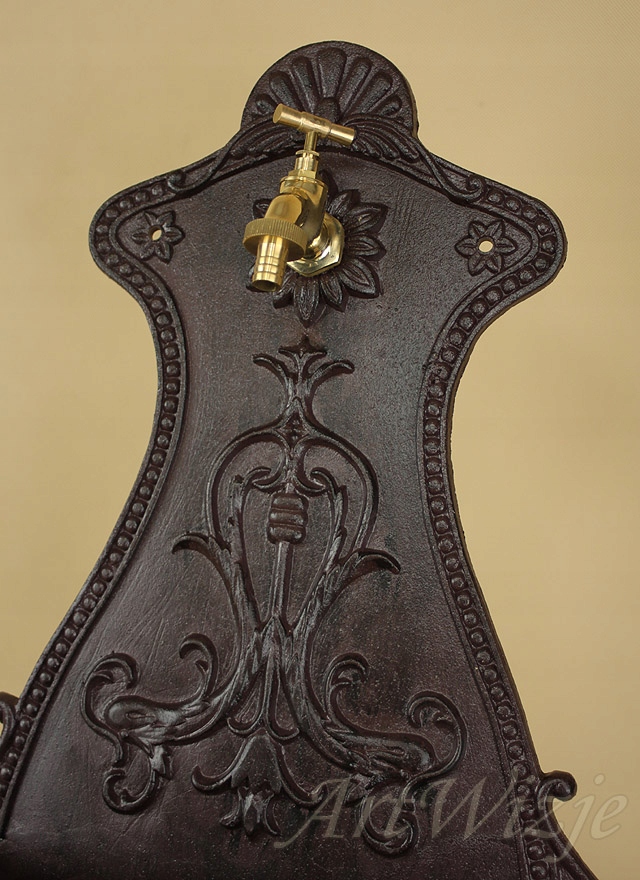 Алюмінієвий злив (раковина) з краном, прикрашеним рослинним орнаментом.