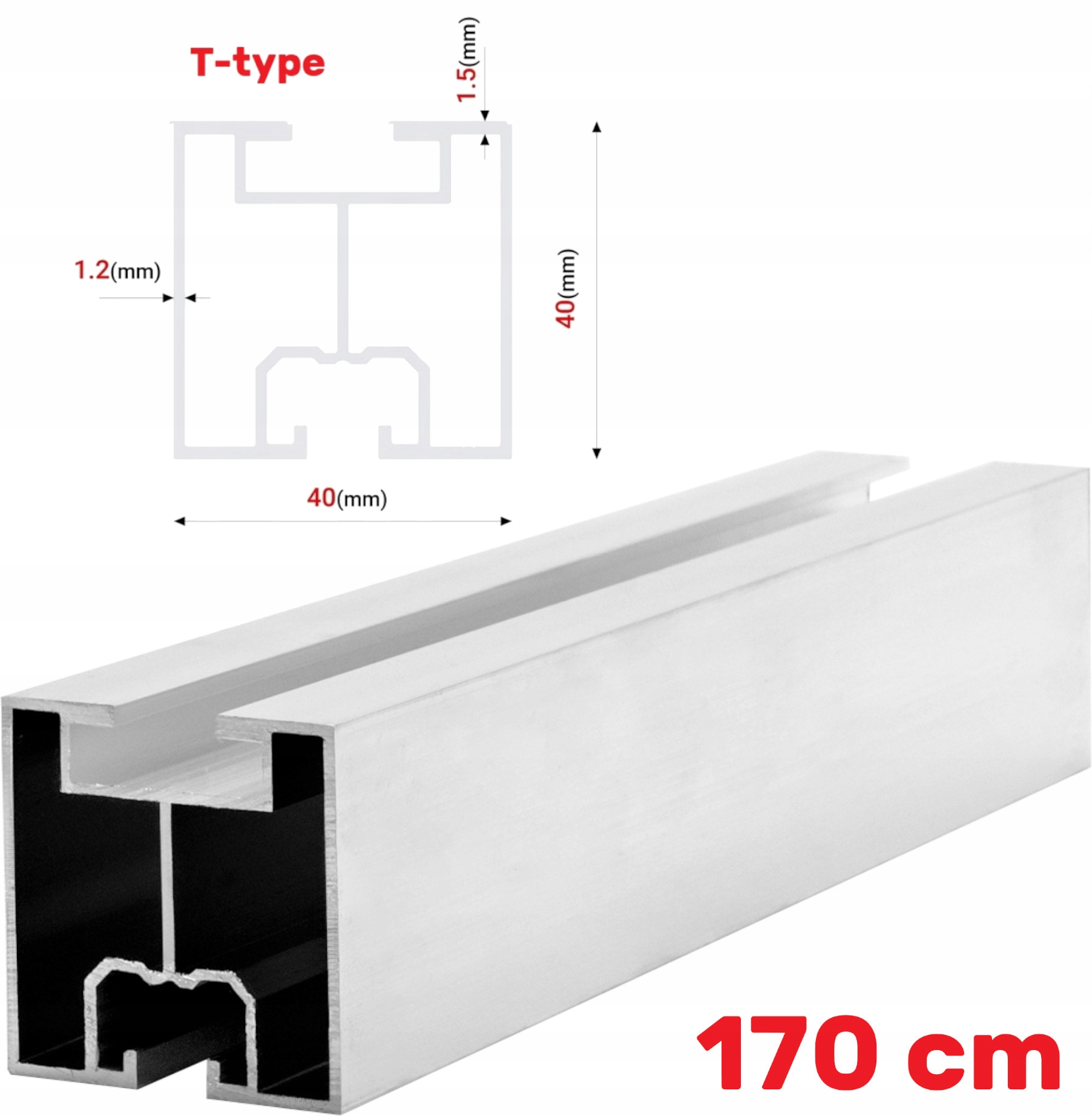 Алюмінієвий профіль 40x40 для монтажу сонячних батарей 170 см тип t