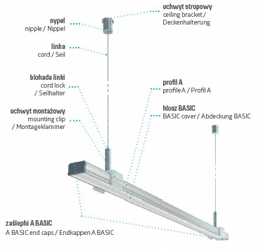 - Максимальна потужність світлодіодної стрічки: BASIC PVC Diffuser: 17W, BASIC PMMA, PC: 22,2W, HIGH PVC, PMMA: 22,2W