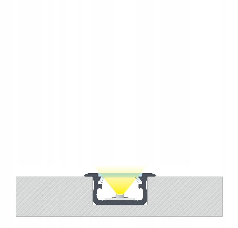 алюмінієвий профіль b для поглиблення в отвори, намальовані на поверхні. Один з найбільш мінімалістичних та сучасних проектів. Ідеально підходить для монтажу всередині намальованого отвору. Мінімальна необхідна глибина отвору - лише 9 мм.
