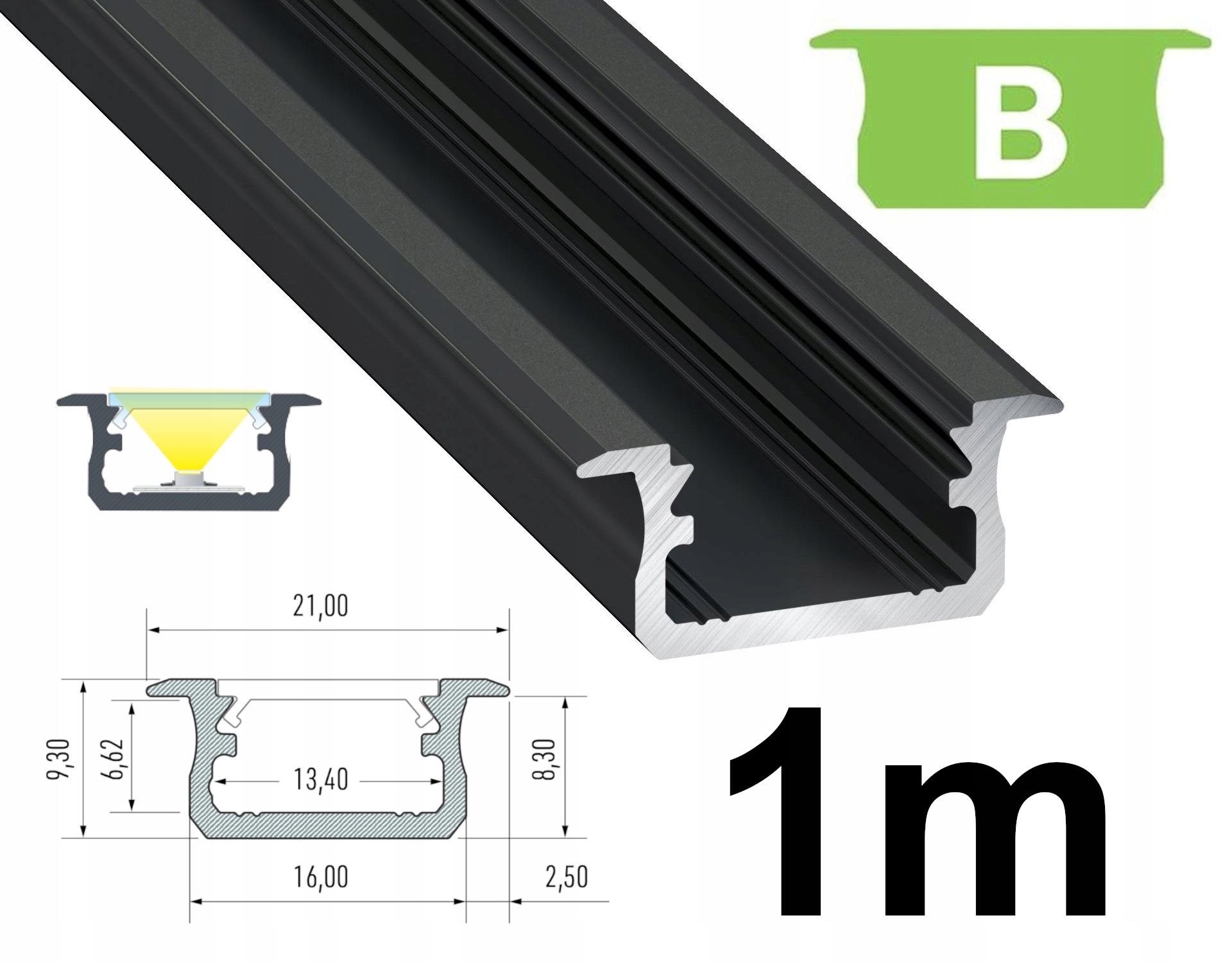 Алюмінієвий профіль для 1 м B світлодіодні стрічки Чорний