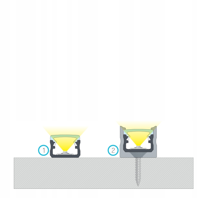 Багато людей, які вже встановили світлодіодну стрічку, знають, як важко приклеїти навіть дуже гарну світлодіодну стрічку до землі типу деревини або GK. Також на допомогу приходить алюмінієвий профіль, який є ідеальним ґрунтом для світлодіодної смуги. Профіль повинен бути лише знежирений, і ви можете легко приклеїти світлодіодну смужку.
