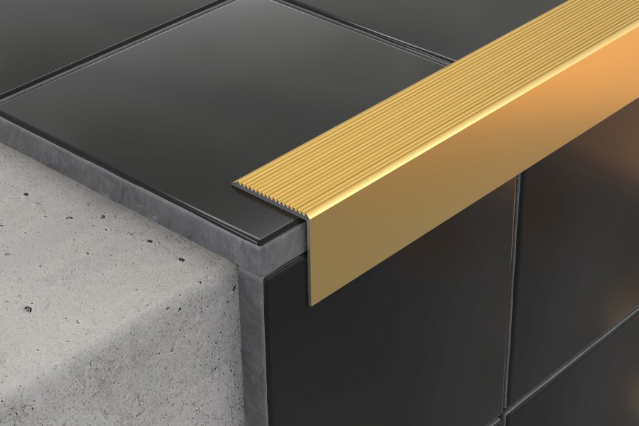 Алюмінієвий рифлений сходовий профіль CEZAR 90см 30х30мм GOLD