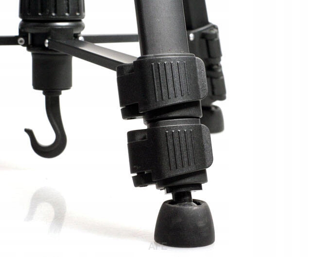 Міцна ручка забезпечує більшу мобільність штатива. Стаціонарний гак дозволяє підвісити додатковий баласт і збільшити вагу комплекту (важливо при монтажі дуже важких відеокамер). Поворотний елемент, видимий над гачком, дозволяє зафіксувати відстань штатива в будь-якій точці (завдяки цьому висоту штатива можна збільшити приблизно на 10 см).