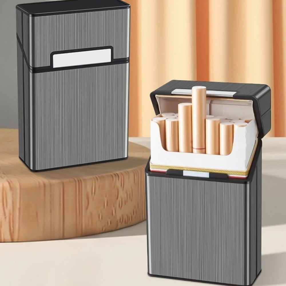 Надійний захист - кришка виготовлена з високоякісного алюмінієвого сплаву, який є міцним, легким, стійким до подряпин і водонепроникним, ефективно захищаючи сигарети від вологи та цвілі.
