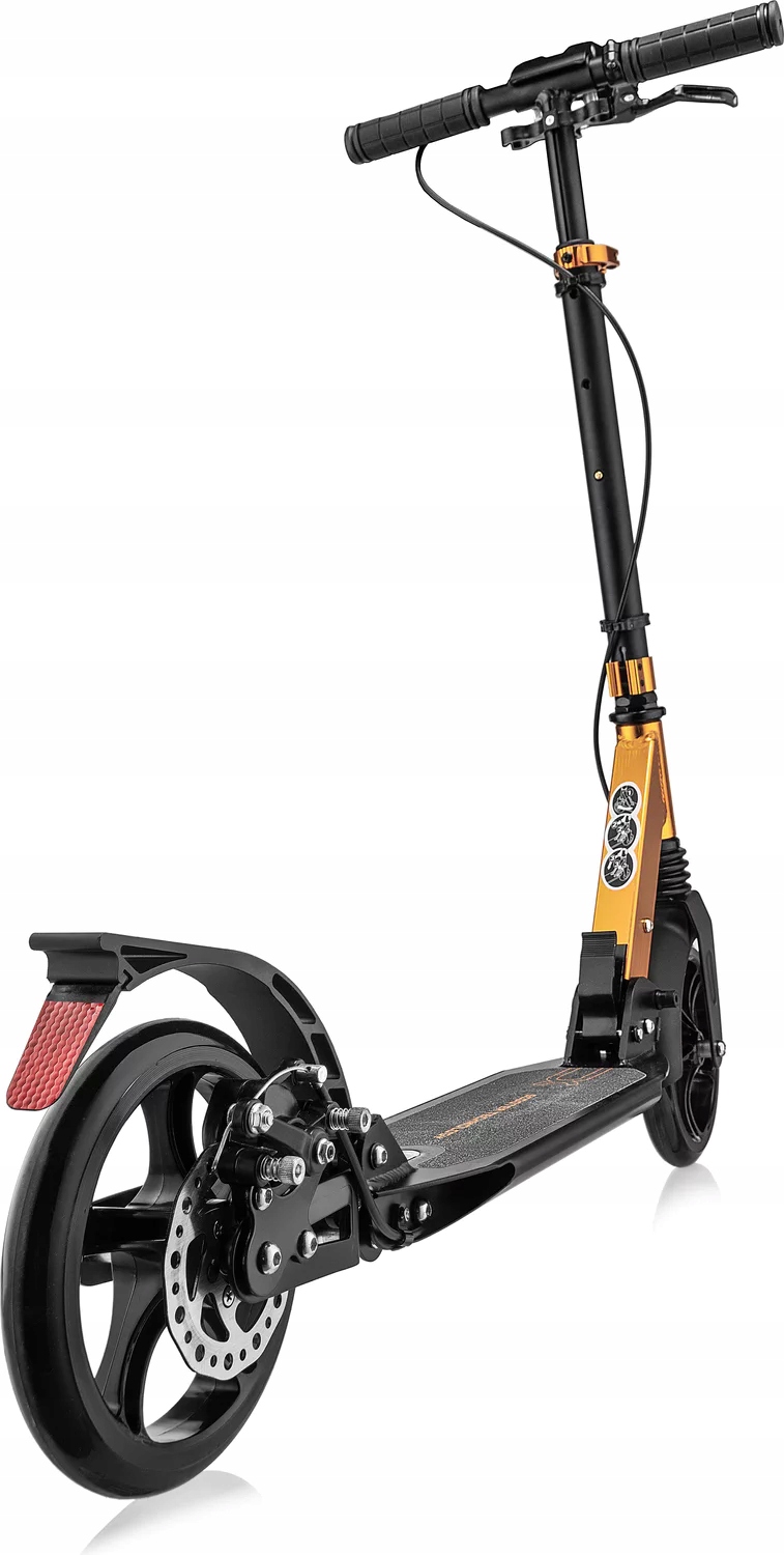 Скутер з дисковими гальмами, на відміну від багатьох інших моделей, має більші колеса, що забезпечує більш швидку їзду. Тому алюмінієвий скутер підходить для людей, які цінують ефективне пересування з місця на місце.