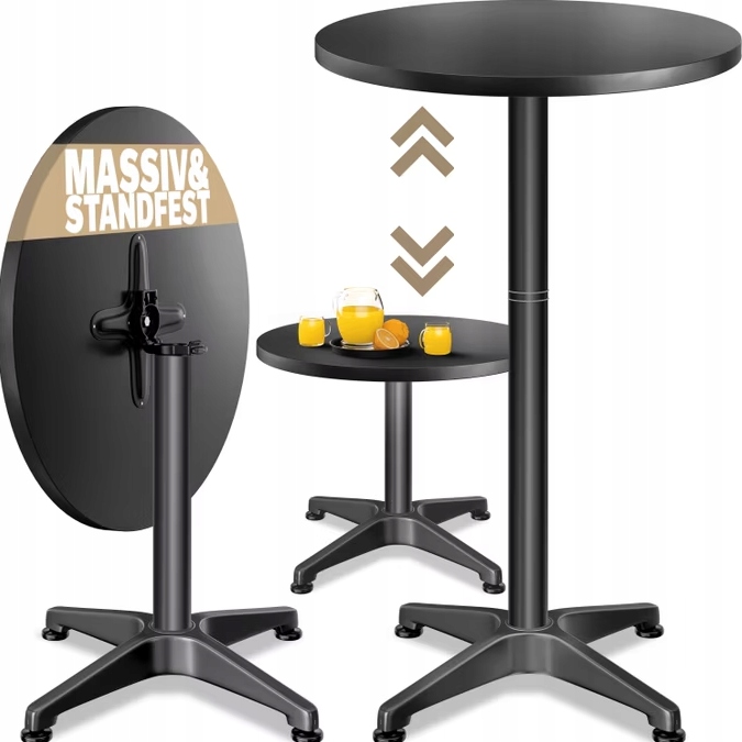 Складний стіл Casaria® BAR зробить вашу наступну вечірку ще красивішою та зручнішою. Висоту таблиці можна регулювати двома способами. На висоті 70 см його можна використовувати як звичайний стіл; На висоті 115 см його можна використовувати як барний стіл на церемонії. Він виготовлений з міцної нержавіючої сталі і покритий чорним лаку з високим глянцем, який надає таблиці елегантний вигляд. Він також може бути використаний у приміщенні і робить задоволення вдома задоволенням. Таблиця може витримати навантаження до 60 кг. Таблиця можна скласти вбік, а таблицю можна приховати, щоб заощадити простір. Колір
