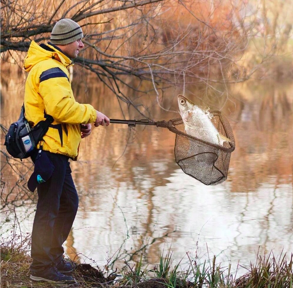 Стійкий телескопічний сачок. Він дуже зручний і ідеально лягає в руку. Він має міцний затиск і регулювання довжини. Дуже зручний у використанні, в складеному вигляді займає мало місця, що робить його дуже практичним. Сітка дуже швидко сохне і не вбирає запахи.