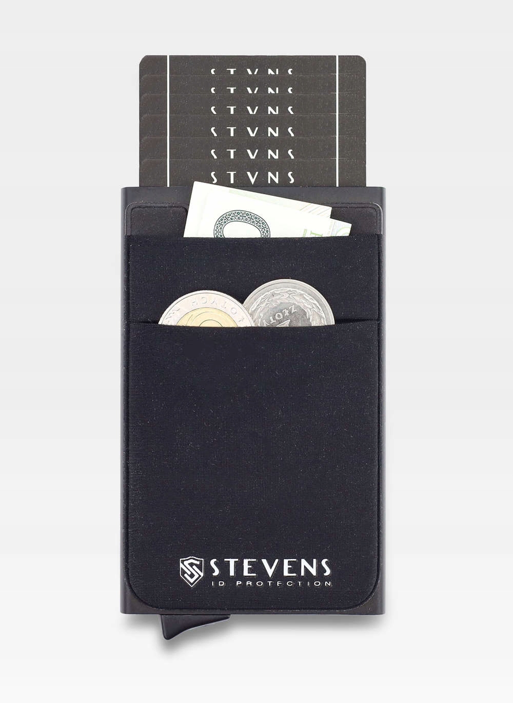 Маленький і тонкий - міні-гаманець STEVENS оснащений спеціальним захистом STOP RFID, який захищає всі картки від сканування та крадіжки даних і коштів.