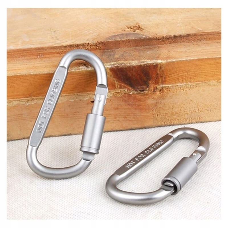 Алюмінієвий туристичний карабін з замком, 8 см, срібна ручка для виживання
