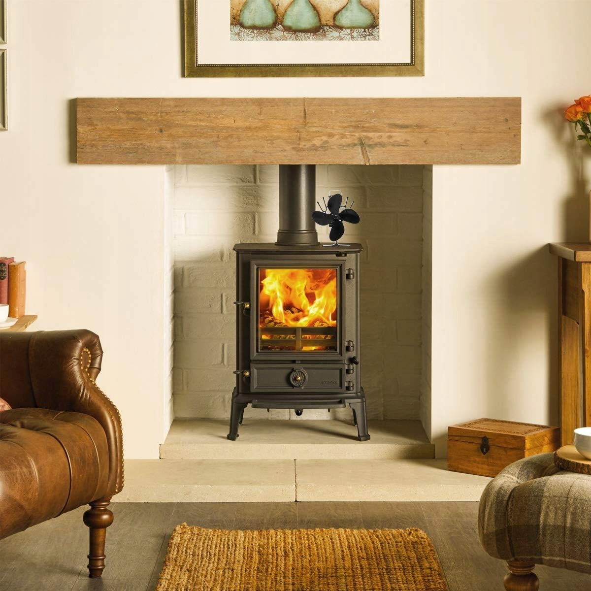 💨 Під час роботи вентилятор м’яко розподіляє тепле повітря, яке виробляє піч, по кімнаті, покращуючи рівномірність температури та посилюючи ефект обігріву.
