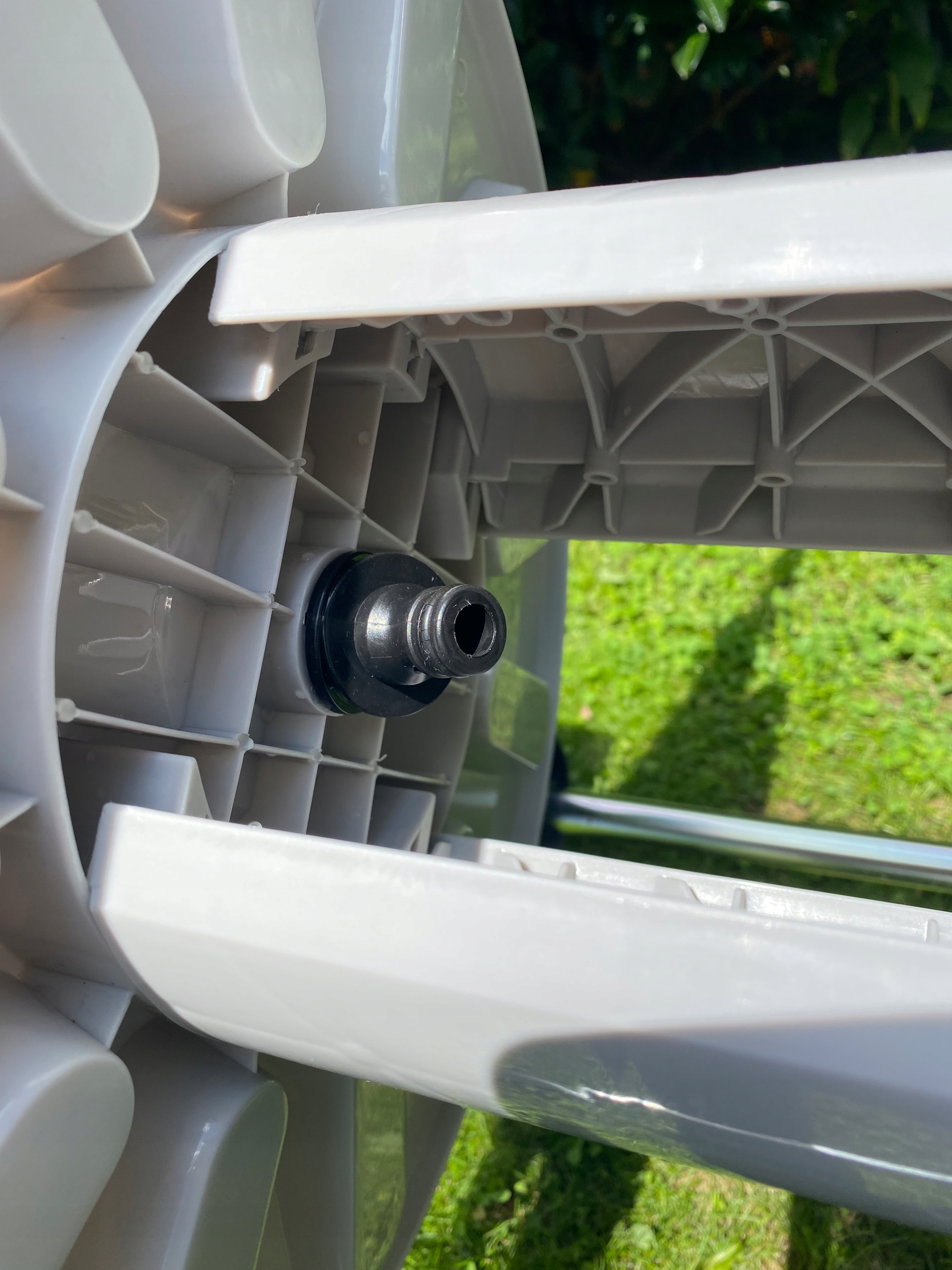 - Великі опорні колеса діаметром 18 см, що полегшує використання комплекту зі шлангом.