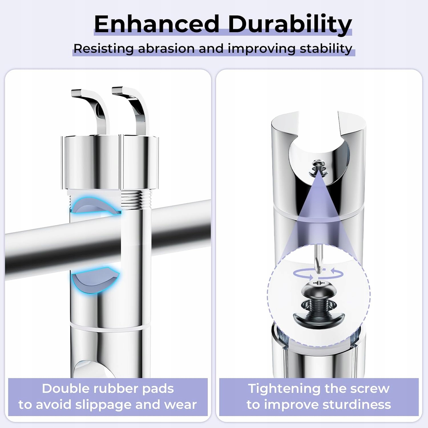 Надзвичайно міцний тримач для душової лійки завдяки матеріалу ABS і хромованому покриттю. Стійкий до стирання, забезпечує довговічність і комфорт.