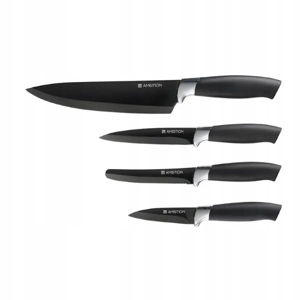 Елегантні ножі з чорним лезом, виготовленим з високоякісної нержавіючої сталі. Ергономічна м’яка сенсорна ручка забезпечує зручне і стабільне зчеплення.