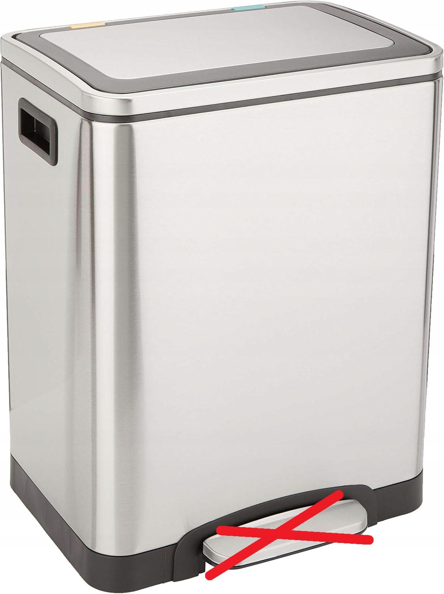 прямокутний смітник: сучасний, стійкий до відбитків пальців та сарбування з брудом 2x15 літрів, виготовлених з матової нержавіючої сталі з рукою, що працює в руці,
