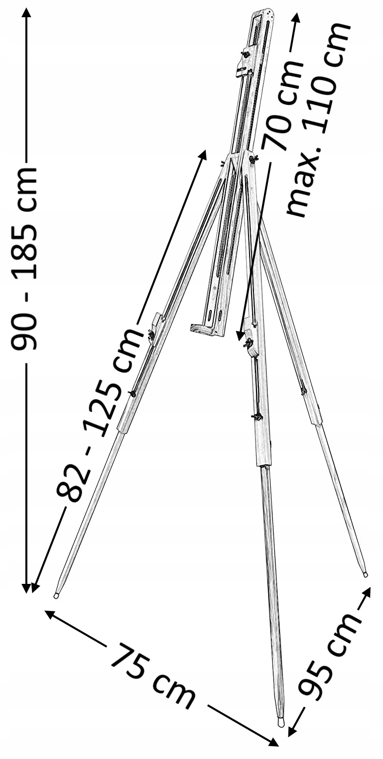 - задня ніжка (оптимальне налаштування мольберта): 90 см