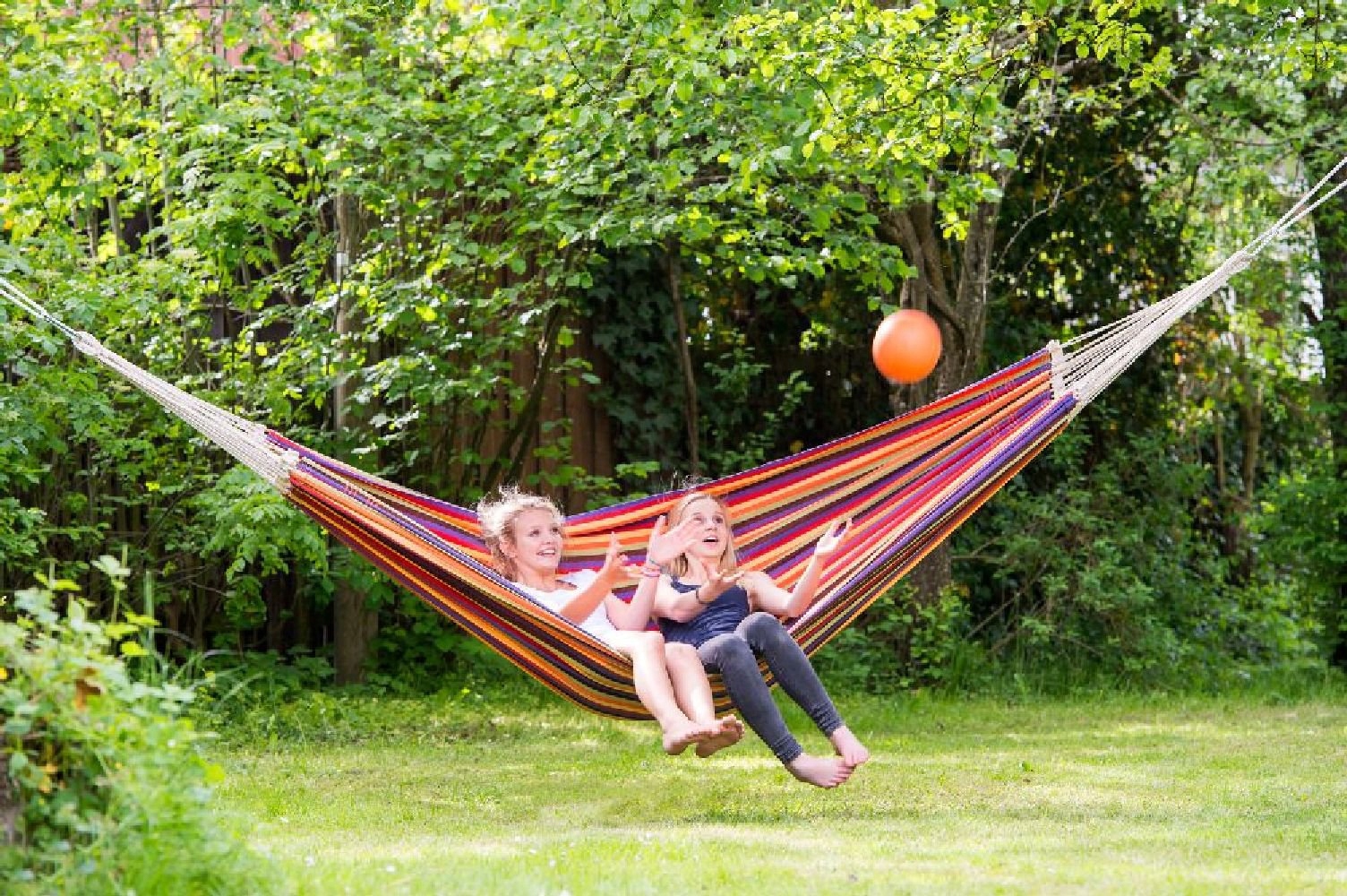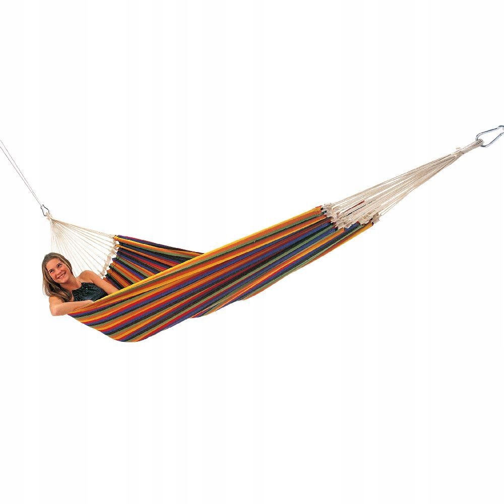 Hammak Paradiso Tropical - це велика модель, яка може вмістити кілька людей. Його дизайн відрізняє багатство інтенсивних кольорів. Ідеально підходить для полуденного відпочинку та загону думок з повсякденних питань. Гамак був виготовлений з використанням бавовни з найвищої якості з Південної Америки. Навантажувальна здатність 200 кг означає, що кілька людей можуть залишитися на гамаку. Гамак виготовляли за допомогою 5000 тисяч ниток, перемежованих спеціальною стрічкою, що робить його надзвичайно стійким до навантаження та механічного пошкодження. Текстура поверхні гамака м’яка на дотик, при цьому довговічна. Використання спеціальної технології Elltex® дозволяє багаторічно використовувати гамак, що демонструє високу стійкість до УФ -обіцянок та вологи. Ідеально підходить для подорожей - вона характеризується низькою вагу, а також займає мало місця після складання. Модель: Paradiso