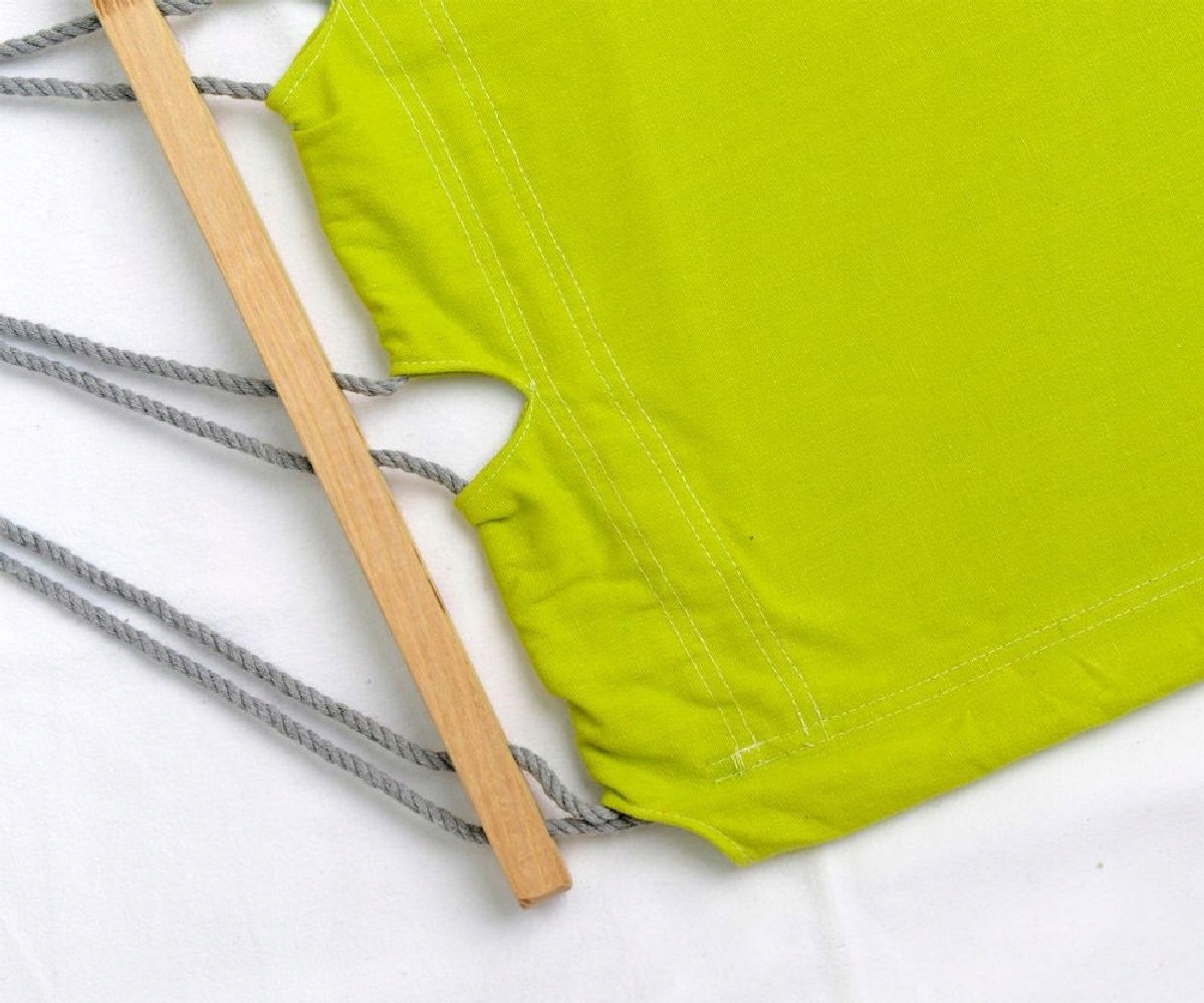 Великий гамак, закінчений з обох боків із жорсткими брусками. Гамак дуже зручний, він був виготовлений з 80% вторинної бавовни та 15% поліестеру.