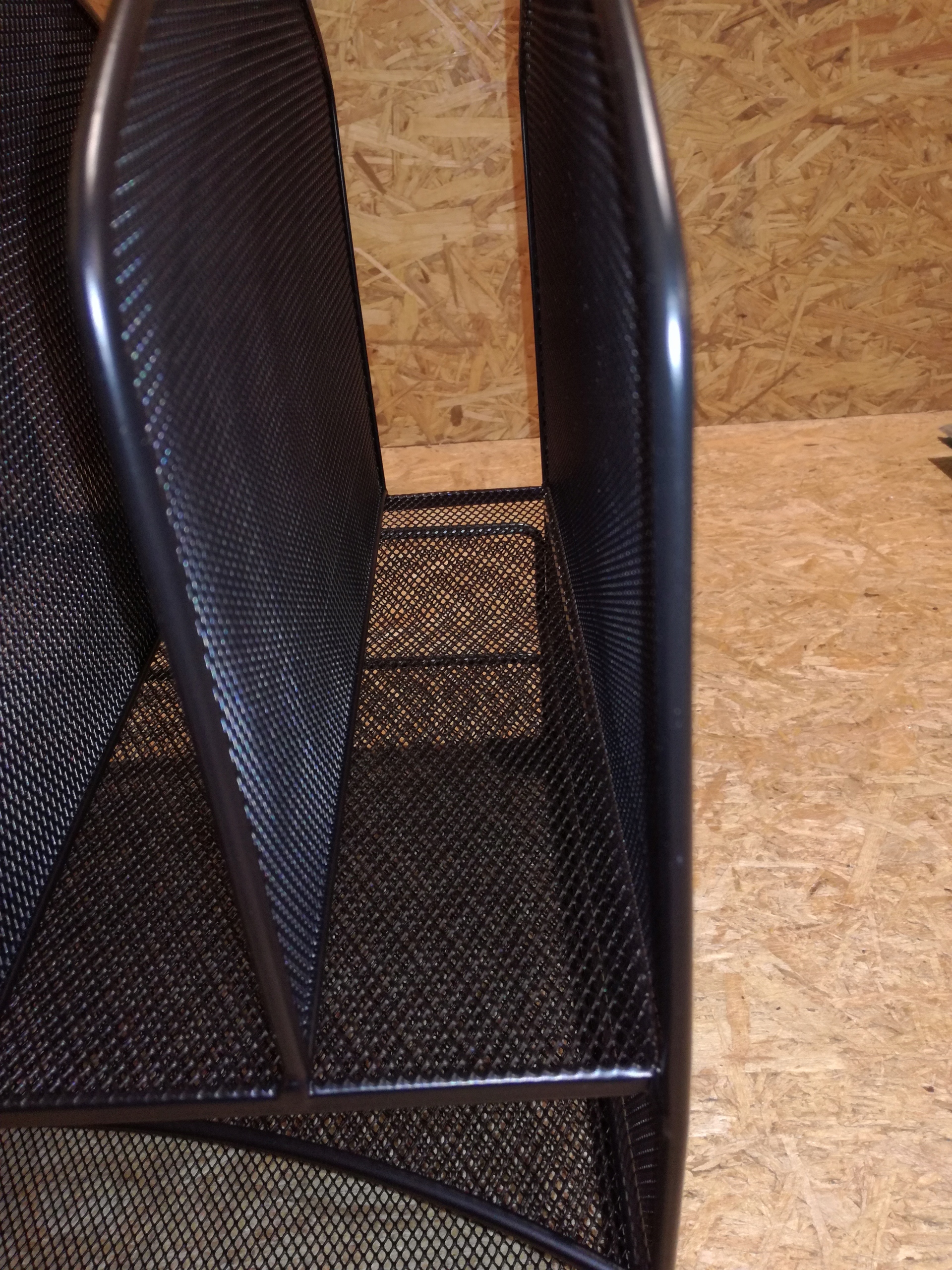Цей продукт має сучасний вигляд і конструкцію зі сталевої сітки, яка допомагає запобігти накопиченню пилу та добре підходить для офісного чи домашнього середовища.