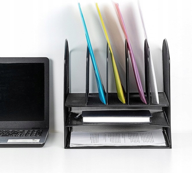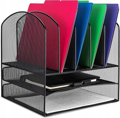 - Настільний органайзер із 5 вертикальними відділеннями для зберігання файлів і 2 лотками для документів унизу
