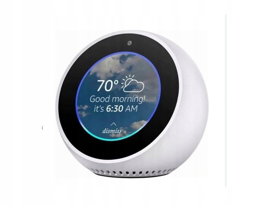Echo Spot Brand Amazon - це унікальне радіо та динамік в одному. Містить 2,5 -дюймовий дисплей, який дозволяє запускати відеодзвінки, відображає поточний час, пісні пісні, альбоми, список відтворення та багато інших. Крім того, пристрій діє як електронна няня.